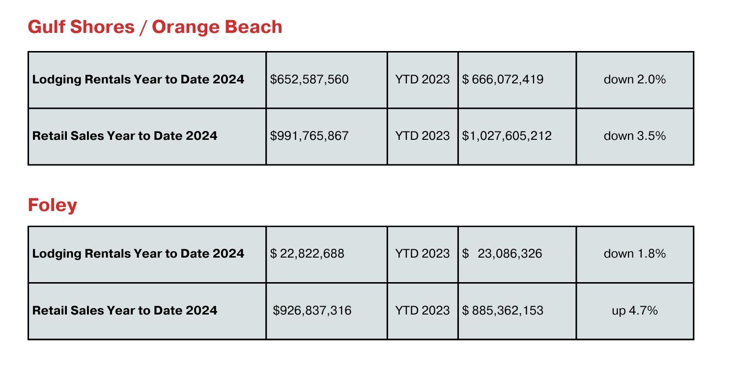 The good news is that consumers are still showing strength and able to keep purchasing, even though at a slower pace than we have experienced in the last few years. According to BR MLS, year to date, there were 5097 residential sales in 2024 vs. 3111 YTD 2014 – a 64% increase in the number of residential transactions compared to 10 years ago . . . and this is in what we are calling a slow market. A lot of these consumers have come from other areas, as the Baldwin County population in 2014 was 199,306 versus an estimate in 2024 of 260,483 according to the most recent United States census data – a 31% population increase in 10 years. Compare that to the population growth of the US – 318.4 million in 2014 vs 345.9 million in 2024 = 8.6% growth. 31% vs 8.6% - even if the national economy is not robust, one would think that the Baldwin County population growth would continue to keep our local economies performing better than the nation.
